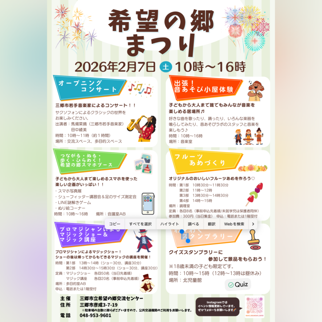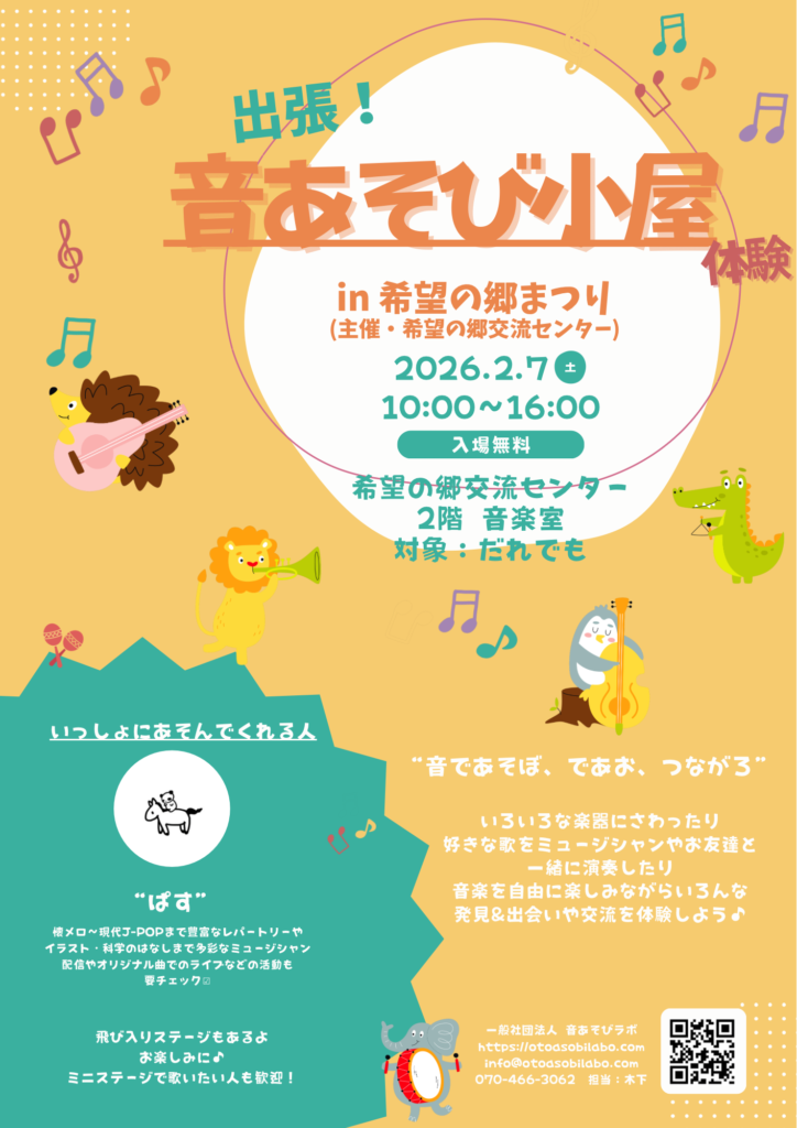 2/7(土)、希望の郷交流センター 希望の郷まつりにて